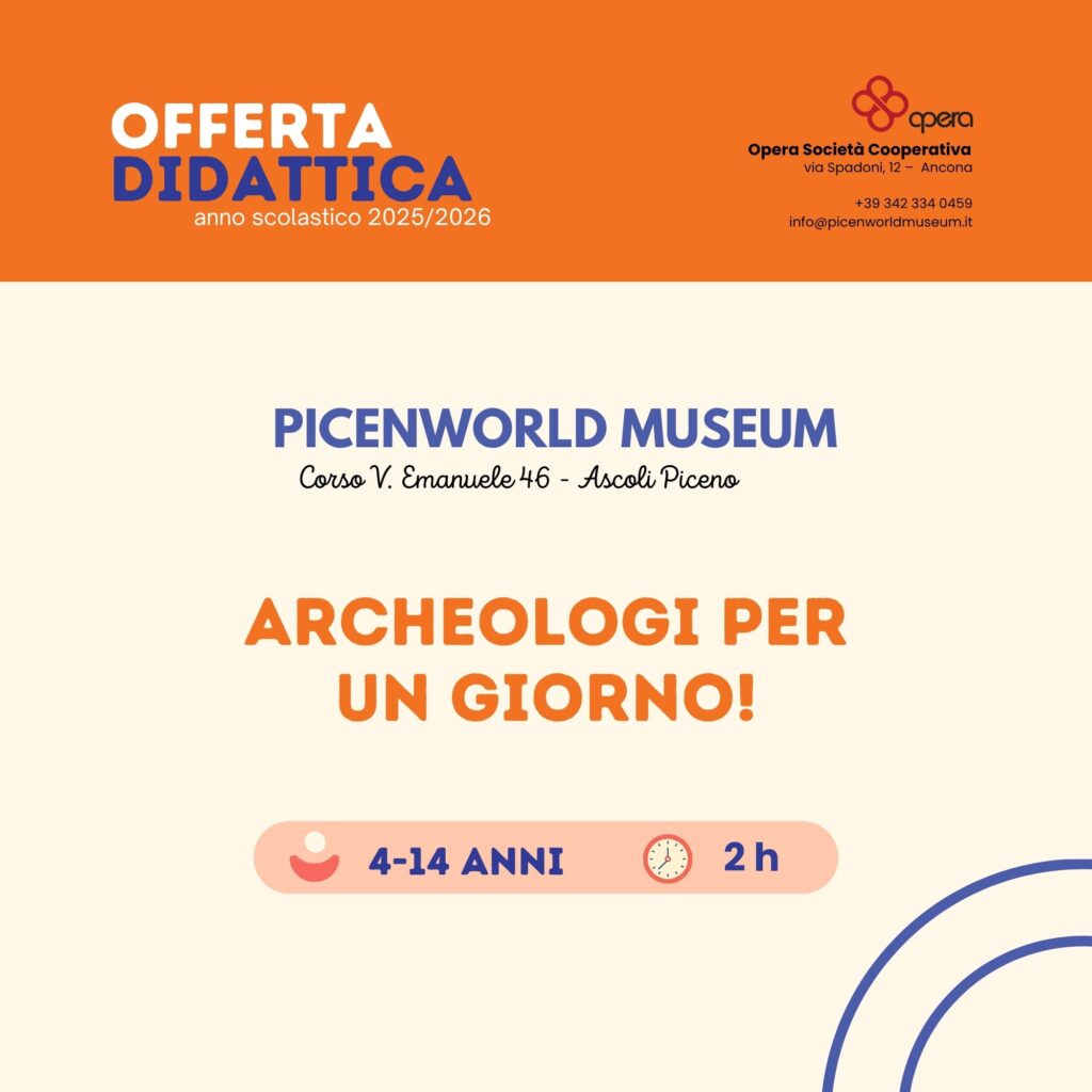 Un’esperienza immersiva nel mondo dell’archeologia! Scopriremo insieme il mestiere dell’archeologo, avendo la possibilità di conoscere gli strumenti e oggetti utilizzati durante lo scavo. Conosceremo insieme lo scavo archeologico e impareremo le fasi di un’autentica ricerca archeologica.