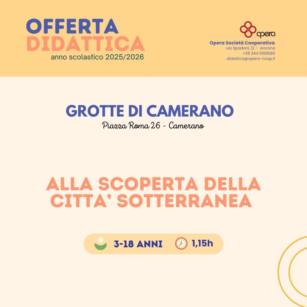 Un viaggio nel cuore sotterraneo di Camerano, alla scoperta di un luogo misterioso e affascinante. Le Grotte di Camerano si snodano come una città nascosta sotto il centro storico: sale, gallerie, simboli scolpiti nella roccia e storie che attraversano i secoli.